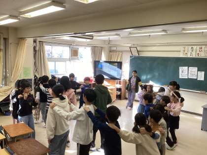 金曜日の朝はたてわり班遊びがありました。校庭や教室で6年生のリードの元、みんなで楽しく関わりました。元気な声が室内を飛び交う教室もあれば、静かに集中して耳を傾ける教室もあり、各々の遊びを楽しんでいました。