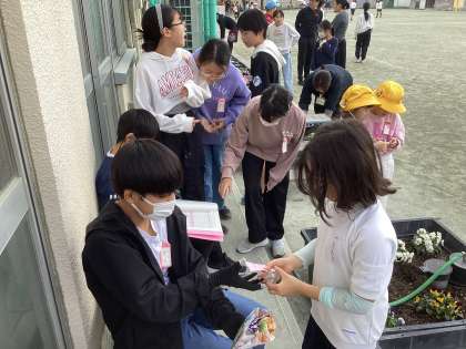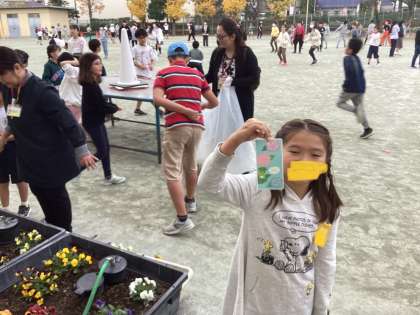 今日のさいばいDAYは、花殻摘みでした。先週に引き続き、常緑会のお母様のお手伝いをいただき、活動しました。1年生から6年生まで多くのお友達が参加。ガチャガチャを引けたお友達は景品のしおりを嬉しそうに見せてくれました。