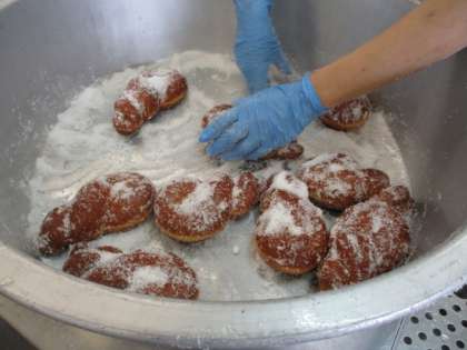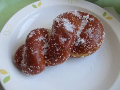 今日は気分を変えてツイスト型のあげパンです。シンプルにお砂糖だけをまぶしました。サンプルケースをのぞいた女の子からは「かわいい!」との声も。腕によりをかけて作ってくれた調理員さんは食缶をかたづけながら「よく食べてますね!」と嬉しそうでした。