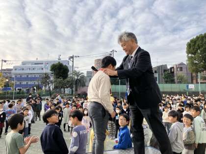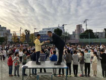 月曜日の全校朝会では、東玉川野球子供会の表彰を行いました。低学年の部は世田谷区ベスト4、中学年の部は世田谷区ベスト8。表彰の為に前方に出てきた子ども達の誇らしい顔、良かったです。次も頑張りが表彰されるよう、皆で切磋琢磨してください。ご指導くださった皆様、ありがとうございました。