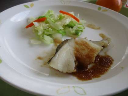 “魚の照り焼きソース”には北海道産まだらを使用しました。やわらかく塩味のきいた身がソースによくあいました。