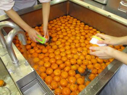 調理員さんは今日もみかんの汚れを一つ一つきれいに洗い流してくれました。