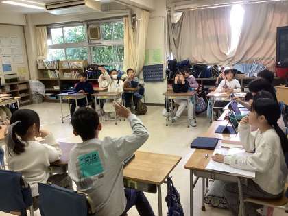 2組の教室では学級会を行なっていました。「2学期おつかれさま会について」ということで、どこで何を行うのか、皆で意見を出し、話し合いを行いました。自分たちで司会進行、記録と上手にできています。