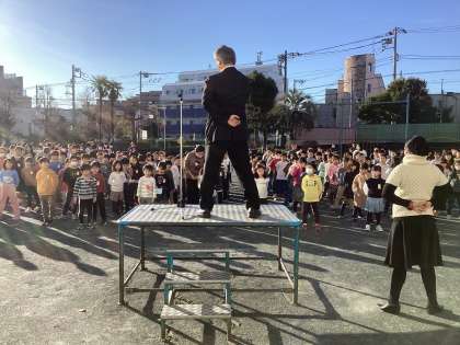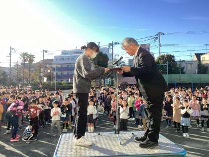 今朝の全校朝会では、「安全」についてのお話しと表彰を行いました。寒い冬の登校では、ポケットに手を入れ、フードを被って登校する姿が見られました。視界が狭くなってしまう事、身を守るための手が咄嗟に出ないことの説明に、頷きながら聞く児童たちでした。