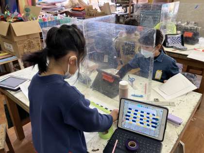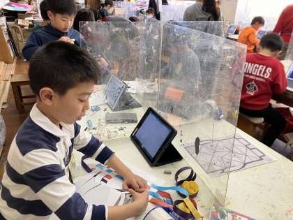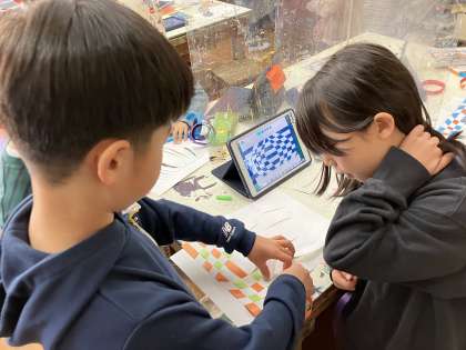 先日、2組の児童が作成した「組み紙ファイル」を持ってきてくれました。「上手にできたので、見てください」とても上手にできていたファイルはどのように作られたのか。ということで、1組の図工の時間にお邪魔してみました。自分で決めた模様に切れ込みを入れ、紙テープを組み込んでいきます。先生の説明をしっかりと聞き、お互いに教え合っていました。少しずつコツを掴むことができ、最初は苦戦していた組み込みも、授業終了時にはスムーズになっていました。次回完成するとのこと。出来上がりが楽しみです。