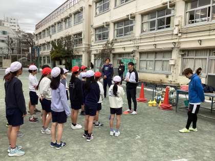元プロサッカー選手の羽生直剛さん、河野広貴さん、阿部伸行さんをお迎えし、サッカー教室を行いました。サッカーが苦手な子どもも得意な子どもも楽しめるよう、ユーモアを交えながら丁寧にご指導していただきました。授業後には「意外と得意かも」「サッカーの授業が楽しみ」と子ども達の弾んだ声が聞こえてきました。