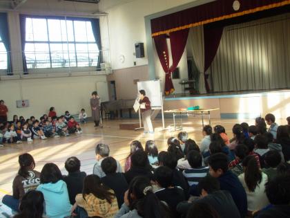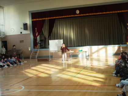 今週の全校朝会は、食育の話でした。今年も、藤田先生(本校13代校長)から、3つの栄養素の話を元に、食育のお話を全校で聞きました。お昼の放送でも、給食委員会から、放送を使って食事の大切さについて発表しています。