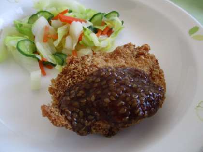愛知県の郷土料理“みそカツ”でした。本場の味に近づけるため地元で愛される老舗店「まるや」の八丁味噌を使用しました。つかうのは今回が初めてかもしれません。一般的な味噌と違い大豆と塩のみで造られる八丁味噌は大豆の旨味を凝縮した濃厚なコクと独特の風味が特徴的です。