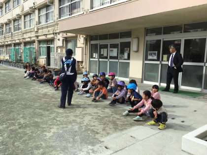 本日、強い風の中でしたが、玉川警察署の方に自転車走行の仕方について教えていただきました。早朝より保護者の皆様にも子どもたちの自転車を校庭に運んでいただき、午後からは、警察の方と共に子どもたちの学習のためにお手伝いもしていただきました。