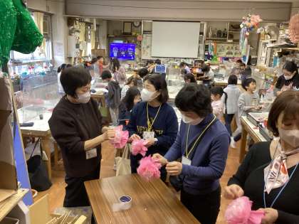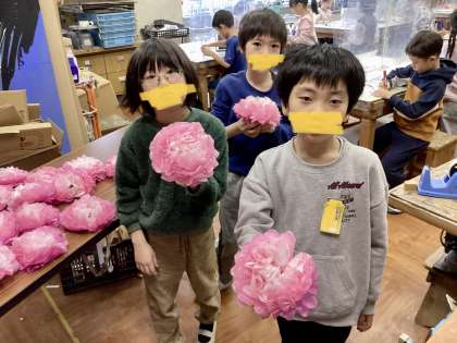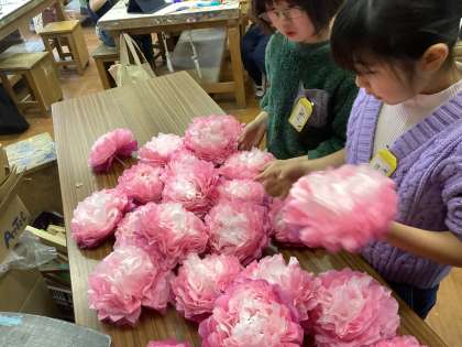6年生を送る会などで使う花のアーチのお花を2年生が作っています。一つ一つ手作りをしたお花ができたと、喜んで報告してくれました。そのお花は「ひがたまフレンズ」の皆様のご協力を得て、花のアーチに仕上がっていきます。「ひがたまフレンズ」の皆様には、本日はお花作りにもご協力をいただきました。