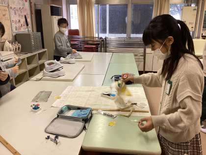 本日も保護者の方々のサポートをいただきながら、ミシンを使った制作活動に取り組みました。手順の支援をいただきながら自分でチャレンジする子、友達同士で教え合う子の様子から、回数を重ねる毎に上達していることがわかりました。「難しい」と言いながらも、頑張る5年生でした。