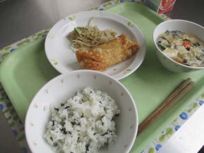 調理員さんが一つ一つ丁寧に包んでくれました。慣れた手付きで素早く包む姿はさすがです。みなさんとてもよく食べてくれて、給食室一同、笑顔があふれました。