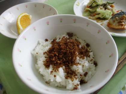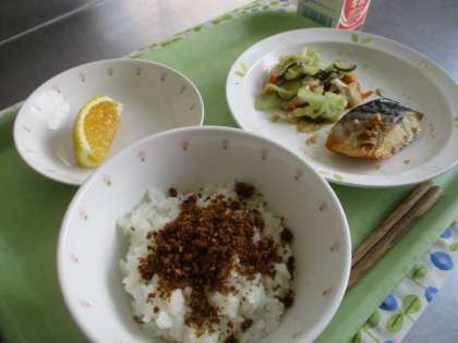 かつお粉をしょう油と砂糖で味付けたシンプルなふりかけは大盛況でした。いつもよりすこし多めに炊いたごはんですが、ほとんど残りませんでした。