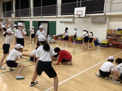 高学年が運動会で挑戦する表現は、「ソーラン節」です。練習では、ひがたまの伝統でもあるソーラン節を、6年生が5年生に教えてくれました。小グループになって、動き方、声の出し方等を丁寧に教えてくれました。練習後、5年生からは「6年生がかっこよかった」「困っていることはないか聞いてくれた」など6年生に感謝の気持ちをもつことができました。運動会の表現を成功させるために、一致団結して頑張っています。