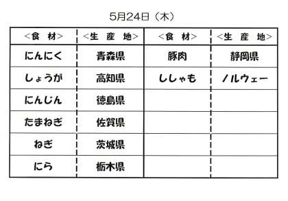 5月23日(水)の給食と24日(木)給食食材の産地について