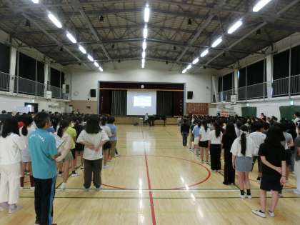 「あの青い空のように」を全学年で歌いました。とても気持ちの良い声を響かせて歌っていました。