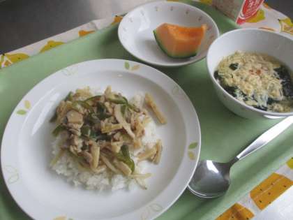ピーマンが苦手な子も食べやすいように調理員さんが細い千切りにしてくれました。また、もやしや凍り豆腐も加わり苦味を抑えた食べやすいチンジャオロースに仕上がりました。