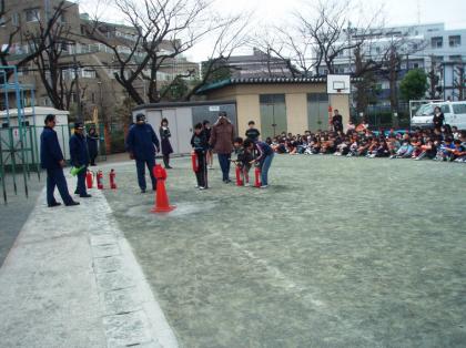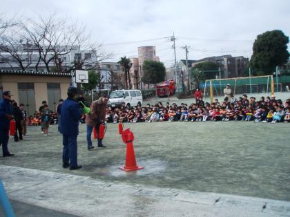 3月11日(水)避難訓練 煙体験・消火器体験