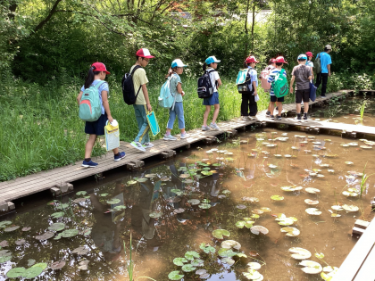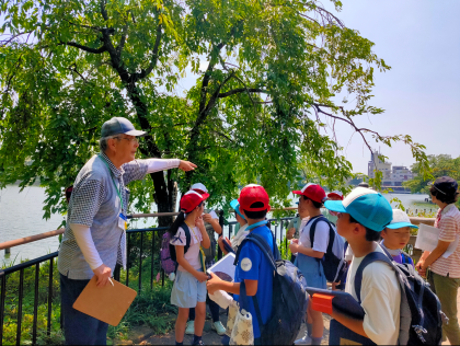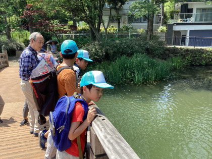 4年生は、理科の学習の一環で、洗足池公園に行き、夏の自然の様子を調べる観察を行いました。城南学習支援グループの方々にガイドをしていただき、実際に見たり触れたりして体験的に学ぶことができました。