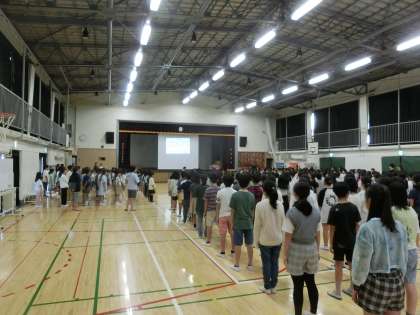 今日の音楽朝会では、「うみ」を歌いました。先生のピアノ伴奏と6年生のオーシャンドラムを聴き、海の情景を想像しながら歌うことができました。