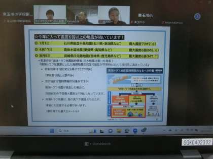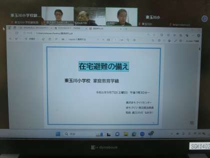 今日の午後は、「もし小学校に避難することになったら?を考える」〜東玉川小学校の避難所運営について、在宅避難の備え〜をテーマに、東玉川小学校避難所運営委員会藤原本部長と、奥沢まちづくりセンター、まちづくり防災担当和田係長にzoomにて講演をしていただきました。