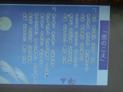 今日の音楽集会では、「虫のこえ」を全校で歌いました。1〜3年生は元気な声で、4〜6年生は美しく伸びやかな声で、体育館に歌声を響かせていました。