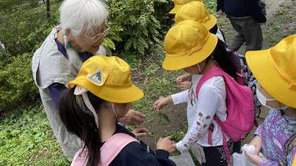 「このどんぐり、さっきのと形がちがうね」「このお花きれいだね。なんていう名前かな?」と様々な発見があったようです。