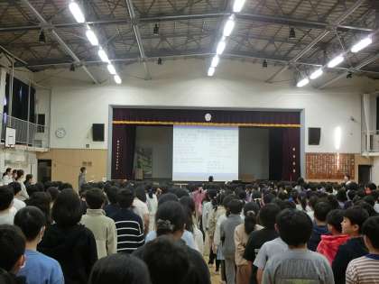 今日の音楽朝会では、全校児童で「まくをあけよう」を歌いました。気持ちの良い声を、体育館中に響かせていました。