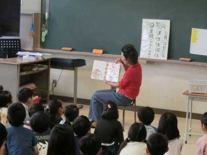 今日の朝は、おはなしたまごがありました。各クラスの担当の方が、読み聞かせをしてくださっています。どんな本が読まれているかは、ホームページの「読書活動」のところに読み聞かせ作品一覧というリンクがありますので、ぜひそちらをご覧ください。