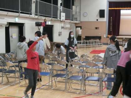 明日からいよいよリハーサルが始まります。今日の6時間目は、6年生が会場設営の準備をしていました。手早く椅子を並べたり、マットを敷いたりして、あっという間に会場づくりを終わらせることができました。さすが6年生ですね!