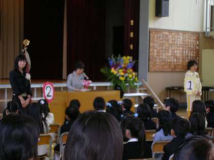 満開の桜のもと、平成21年度の始業式が行われました。7名の転入生を迎え、432名(新1年生65名を含む)13学級でスタートしました。