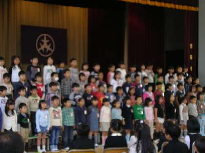 6年生代表の挨拶、2年生の歓迎の言葉、歌、合奏もありました。最後は、2年生と6年生の校歌斉唱で、入学式は終了しました。