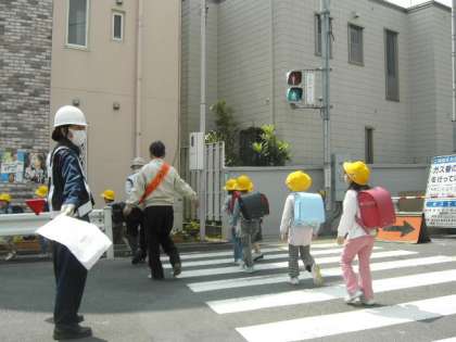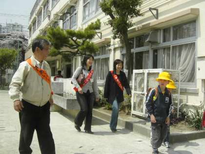 また、保護者ボランティアの「あい 愛パトロール」の皆様(赤いたすき)にもご協力いただき、初日からスムーズに登下校ができています。