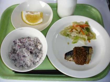 5日(木)の主菜は、焼いたサバに甘辛いごまだれをかけた「サバのごまだれかけ」でした。以前、「白身魚の野菜あんかけ」に苦戦していた1年生にも、これは大好評でした。