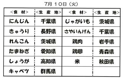 7月10日(火)給食食材の産地について