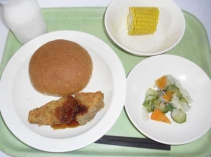 12日(木)はセルフフィッシュサンド、イタリアンサラダ、トウモロコシ、どれもよく食べていました。残菜はとても少なかったです。