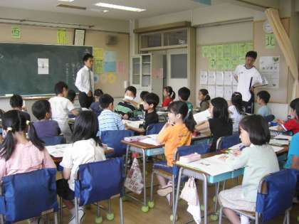 学級のみならず、学年でも共通理解を深めるために、教師も互いに子どもたちが専科の授業(図工・音楽)を受けている時間には、授業を見合うようにしています。学年の子どもたちのことは、学年の教師全員が見守ることができるとともに、授業力向上にもつながります。授業参観のあとは必ず、放課後意見交換をしています。
