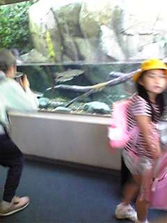 水族館に入ると、東京湾に注ぐ川でおよぐ魚がたくさんいました。(写真左)