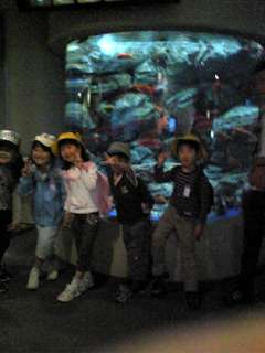 500tの大水槽の中では、たくさんの魚たちが泳ぎ回っていました。(写真右)