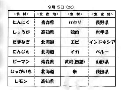 9月5日(水)の給食