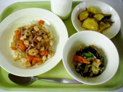 14日(金)の給食では、「あんかけチャーハン」、「わかめサラダ」は残りが少なかったですが、「さつまいものマーマレード煮」は、いくつかのクラスで半分ぐらい残ってきてしまい、とても残念でした。マーマレードが苦手な児童がかなりいたようです。