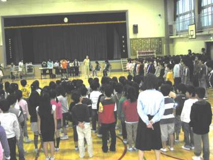「むずかしい言葉もありますね。雨風にたわまぬ気力というのは、今日みたいに大雨と大風の時は学校を休もうかなという気持ちのことですか・・・」という北先生の問いかけに、「ちがいます。雨にも風にもまけない強い気持ちです。」という返事がありました。