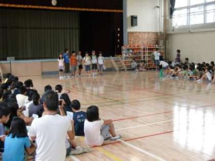 来週の火曜日に行なわれる「ザ☆まつり」のアピール集会がありました。3年生以上の各クラスで話し合った出し物について、みんなに来てもらえるよう寸劇を交えるなど工夫してアピールしました。子どもたちは、今からもうワクワクしている様子です。