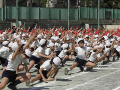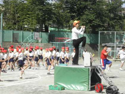 本校の準備・整理運動は、10年ほど前に世小研体育部に所属していた教員が開発した、ストレッチとリズムダンスをしています。昨年度、体育的行事委員会により、更に改善バージョンアップしました。リズムダンスのオープニングとなる全校児童による「波」は、観客の歓声がおきる美しさです。今年は、どうでしょうか。当日をお楽しみに!!
