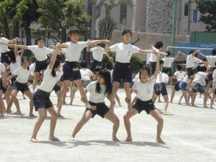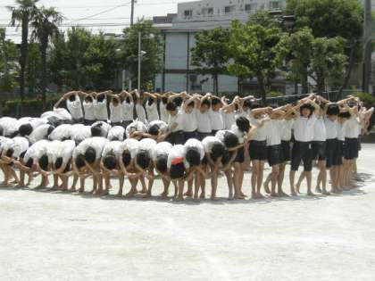 5・6年生による組体操は、集団行動の美しさを知り、規律ある集団行動がとれるようにすることにあります。同時に、日常の学習成果の総合的な発表もねらいのひとつです。