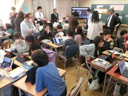 本日は校内研究会が行われ、5年生の社会科「未来を作り出す工業生産」の授業を教員全員で見ました。工業製品がどのような願いをもって変化してきたのかを考え、昔の工業製品を調べたり、調べたことを友達と発表し合ったりしながら、学習に取り組みました。