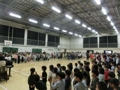 今日の朝は、音楽朝会がありました。「きたかぜこぞうのかんたろう」を全校で歌いました。4年生が元気よく「かんたろう!」の合いの手を入れながら、気持ちの良い声を体育館に響かせていました。
