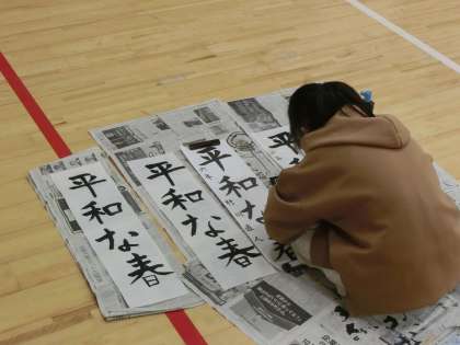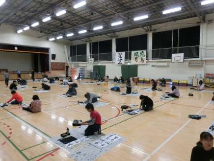 今日は土曜授業の日です。6年生が体育館で書初めを行っていました。学年が上がるにつれて、文字の画数も多くなり、だんだんと書く字も難しくなってきます。姿勢よく集中して筆を進めていく姿は、さすが6年生だなと感心しました。