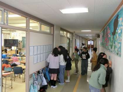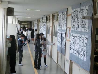 今日から書初め展が始まっています。早速、5年生が書初め展の展示を見学していました。じっくりと作品を見つめながら作品の良さをメモしており、とても良い鑑賞態度で臨む姿は、さすが高学年だなと思いました。