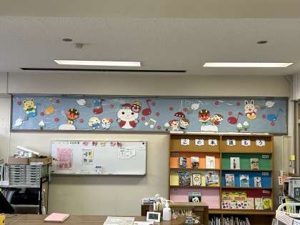 お正月が過ぎ、コンビニエンスストアなどでも「恵方巻」の看板がよく見られる季節となりました。学校の図書室も装飾が変わり、節分仕様になっています。装飾は、毎回読書支援活動部の皆様が行ってくれています。